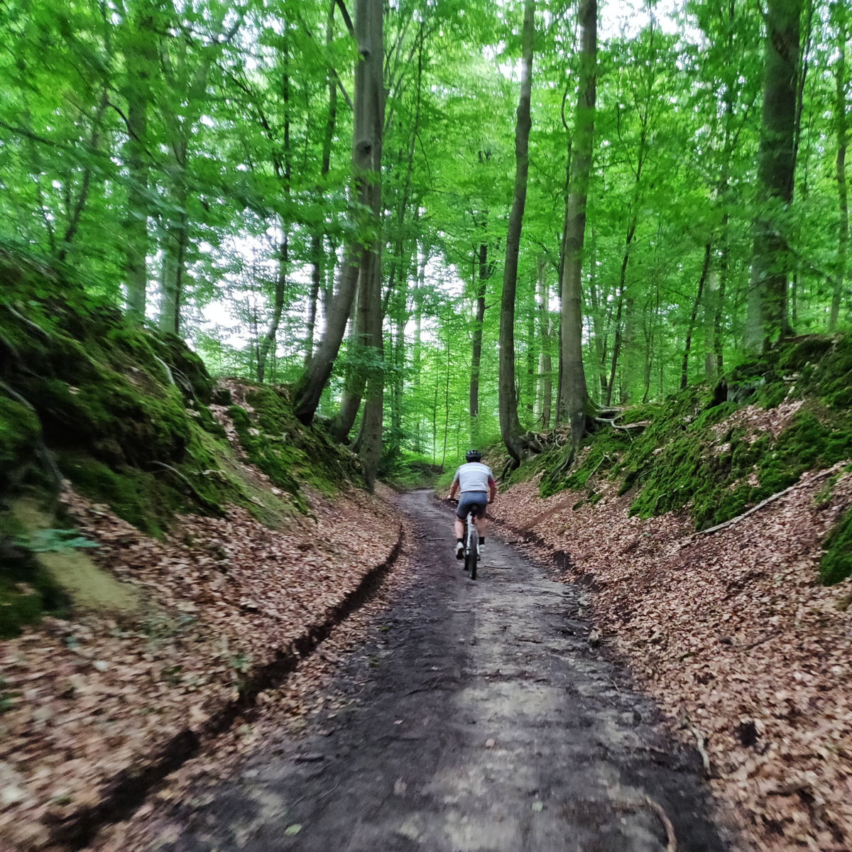 Quand je vois des cyclistes confirmés foncer à toute vitesse, le VTT me semble si simple. Pourtant, cela requiert de l'endurance ET de la technique. Une technique que je ne possède visiblement pas encore. Je n'avais qu'une idée en tête : « Comment faire pour ne pas tomber ? » J'étais donc très contente que l'énorme suspension de mon vélo amortisse les chocs des racines, pierres et trous que je ne pouvais pas éviter.