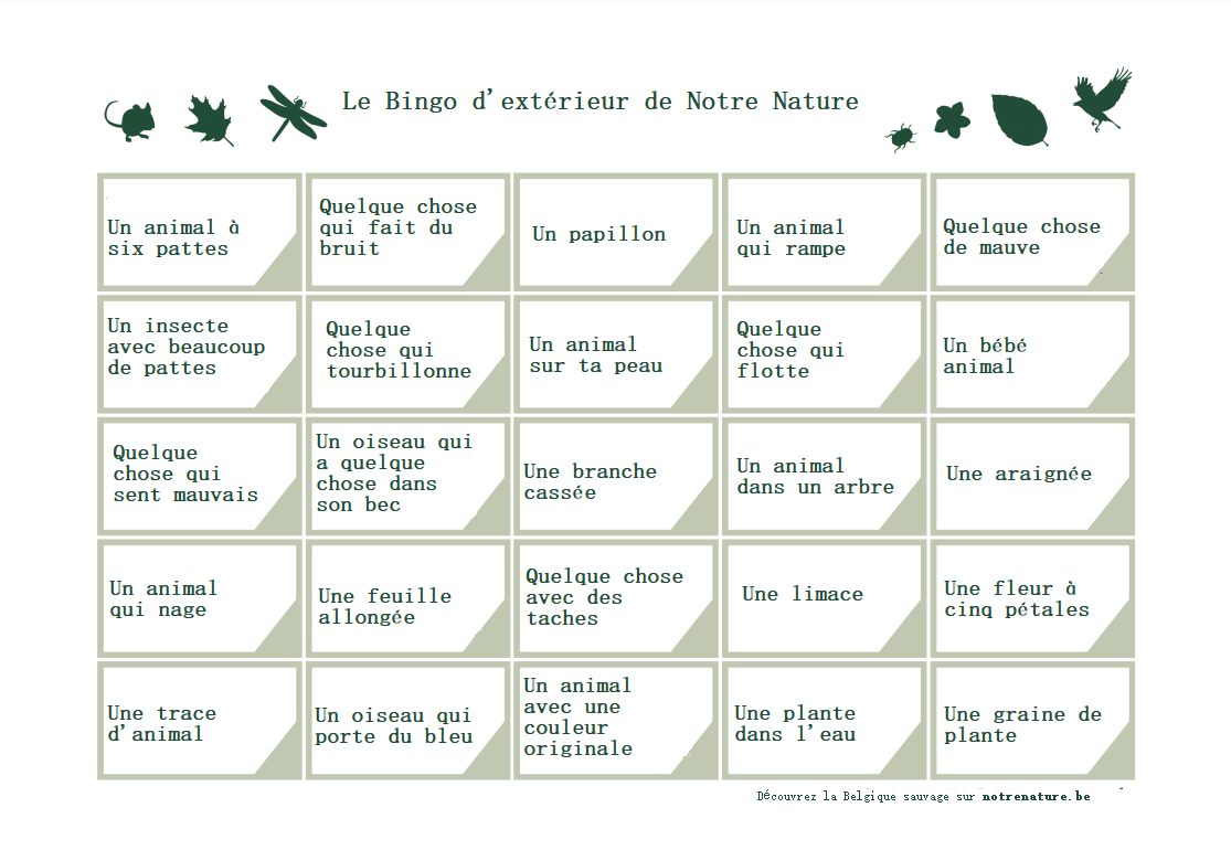 Testez le Bingo d'extérieur de Notre Nature!